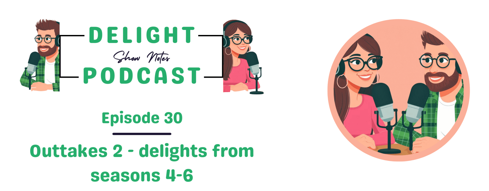 In an episode filled with laughter, hosts Adam Curtis & Leah Sax reflect on six seasons of Delight Podcast with outtakes from seasons 4-6 (Check out eps 14 for Outtakes seasons 1-3). Laughter includes: Jubi da Silva, Femi Kalejaiye, Rachel Meynell, Steve Osei-Mensah, Tom Parson, Lucy Rycroft, Phil Short, Inonge Siluka and Helen Thorne-Allenson. GetContinue reading “SHOW NOTES Episode 30: Outtakes 2 – delights from seasons 4-6”